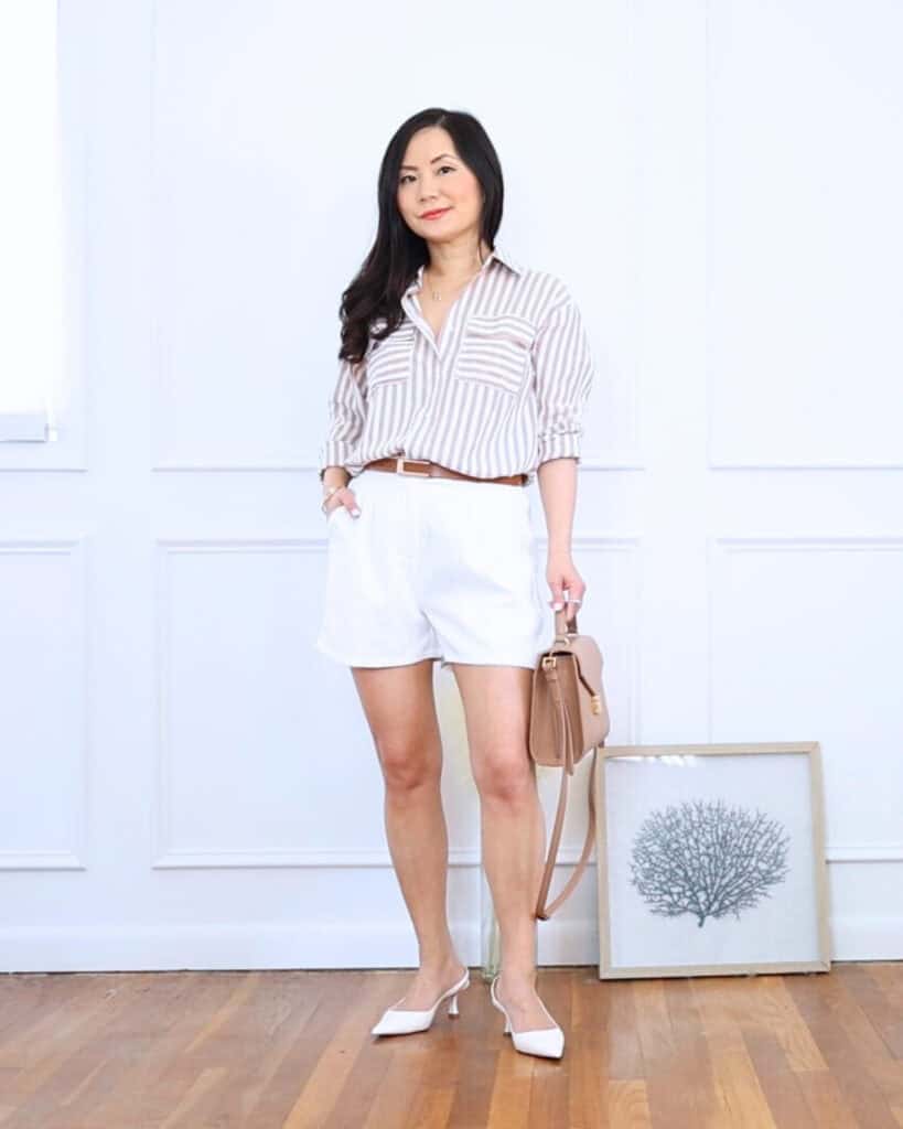I’m convinced every petite closet needs a great pair of white shorts. These hit mid-thigh, which is just right for adding length without being too short. I like to pair them with a lightweight striped button shirt, either tucked in fully or with a half-tuck for a laid-back vibe.