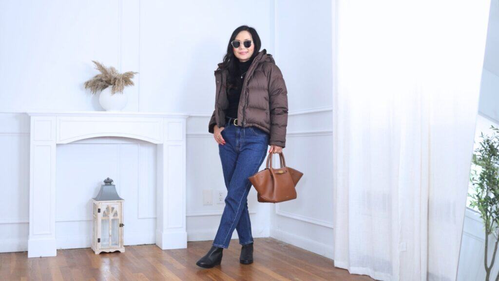 If you live in a colder area, puffer jackets are fall essentials for those chilly mornings and nights! I prefer a cropped version—it keeps the proportions flattering, especially on a petite frame. I wear it over a fitted black turtleneck with dark-washed jeans, then finish with Chelsea boots for a sleek, functional look.