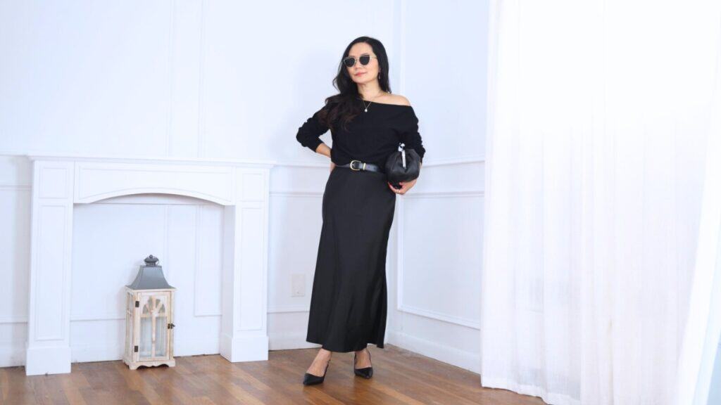 This sweater from Aritzia is a bit pricier compared to my other pieces, but I really swear by it in terms of comfort and quality. I also love this one for its convertible neckline. You can wear it as a boat neck for a clean look or pull it off one shoulder for a little drama.