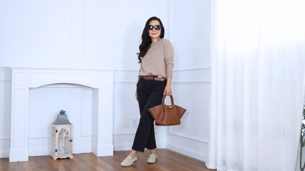Shoes can completely change how an outfit feels. I used to reach for sneakers on repeat, but lately I’ve been leaning into sleek loafers, especially in taupe or skin-tone shades. They instantly elongate my legs and keep my petite frame looking balanced. The key is picking ankle-length jeans that skim the top of the shoe so nothing cuts me off mid-leg.