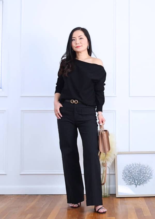 It’s an outfit that feels structured but still comfortable, making it an easy choice for a dinner out or a work meeting.